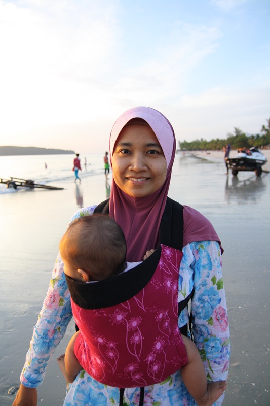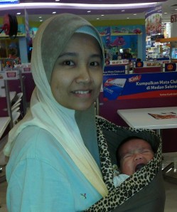 Yup, this is very true! Senangggg sgt utk kita bergerak kemana2 especially in crowded places like malls, pasar mlm. Parents boleh bergerak dgn bebas kemana jua. Plus, kita ada ‘extra hand’ bila ber’babywearing..maksudnya sambil mengendong baby, kita bleh angkat brg, pilih brg, buat kerja rumah etc… 🙂 Tak payah bersusah payah tarik n angkat stroller. During our family vacation ke Langkawi hari tu, takde masalah langsung nak carry Safiyya n Kifli and handle our luggages nak naik ferry…