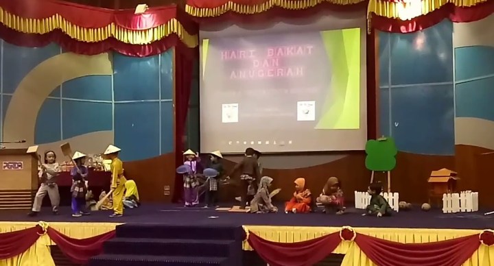 After that joget dance, she had another two performance both were singing & acting. Oh ya! Before I forget, the theme for that day was Desa Tercinta. So all performances were base on this theme.