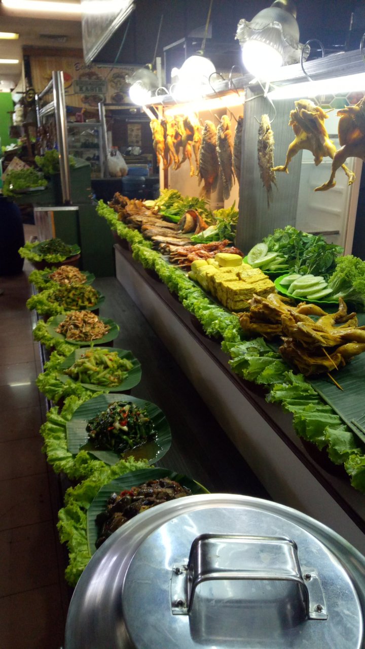 Kami tiba semula di Bandung pada lewat petang dan terus singgah makan malam di sebuah gerai yang menjamu nasi pecel dengan pelbagai pilihan lauk . Di sini nasi dihidangkan panas-panas bersama lauk mentah yang kami telah pilih di mana lauk ini akan digoreng pada waktu itu juga. Dengan cuaca yang baru reda hujan, sudah pastilah juadah yang dihidang panas-panas begini sangat menyelerakan bersama air teh tawar panas…