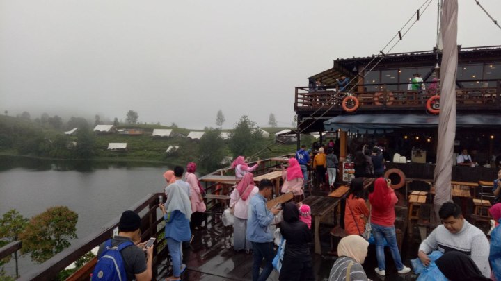Selepas cuaca sedikit reda, kami ke lokasi wisata seterusnya, Situ Patenggang. Ia tempat di mana terdapat sebuah bahtera buatan di tepi sebuah tasek Situ Patenggang. Tempat ini memang indah sekali pemandangannya..Cuaca masih lagi sangat sejuk..