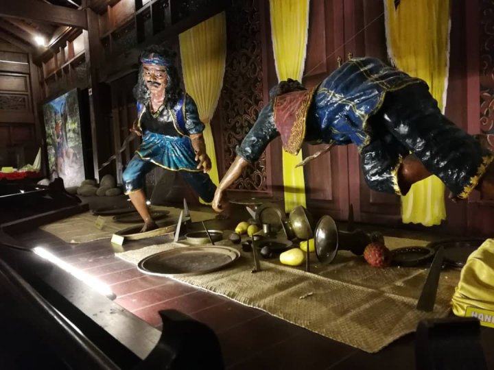 Sebaik kami menuruni Bukit St Paul, hujan turun sangat lebat dan kami pun berteduh di Muzium Arkitektur di kaki bukit itu. Lama juga kami tumpang berteduh hingga hujan reda. Selepas itu kami meneruskan perjalanan ke Muzium Kesultanan Melaka. Anak-anak lebih gemar ke sudut sejarah Hang Tuah dan Hang Jebat berbanding bahagian yang lain..haha. Mungkin kisah pendekar terulung itu lebih dekat di hati mereka. Jam 1 petang kami pun beredar.