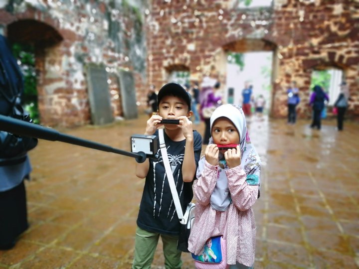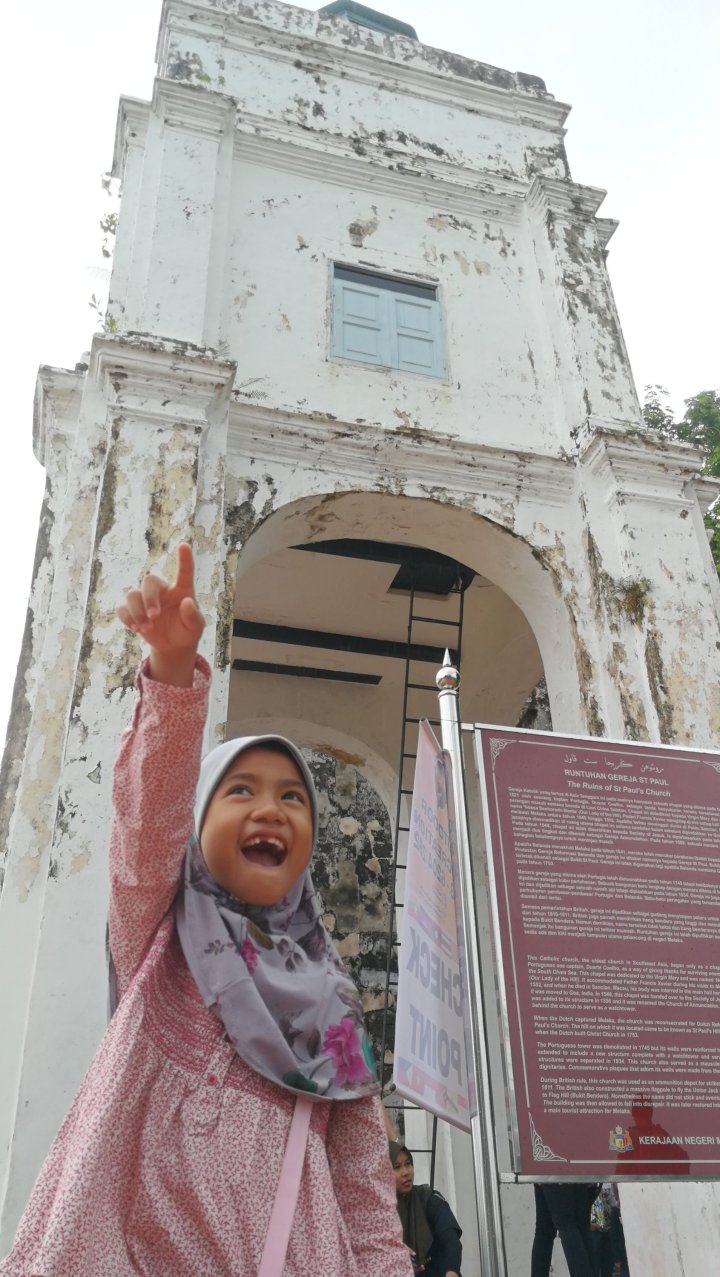 Selepas beca ride, kami anak beranak mendaki Bukit St Paul untuk melihat runtuhan St Paul’s Church. Kifli & Safiyya sempat membeli buah tangan, alat muzik harmonika di sana.