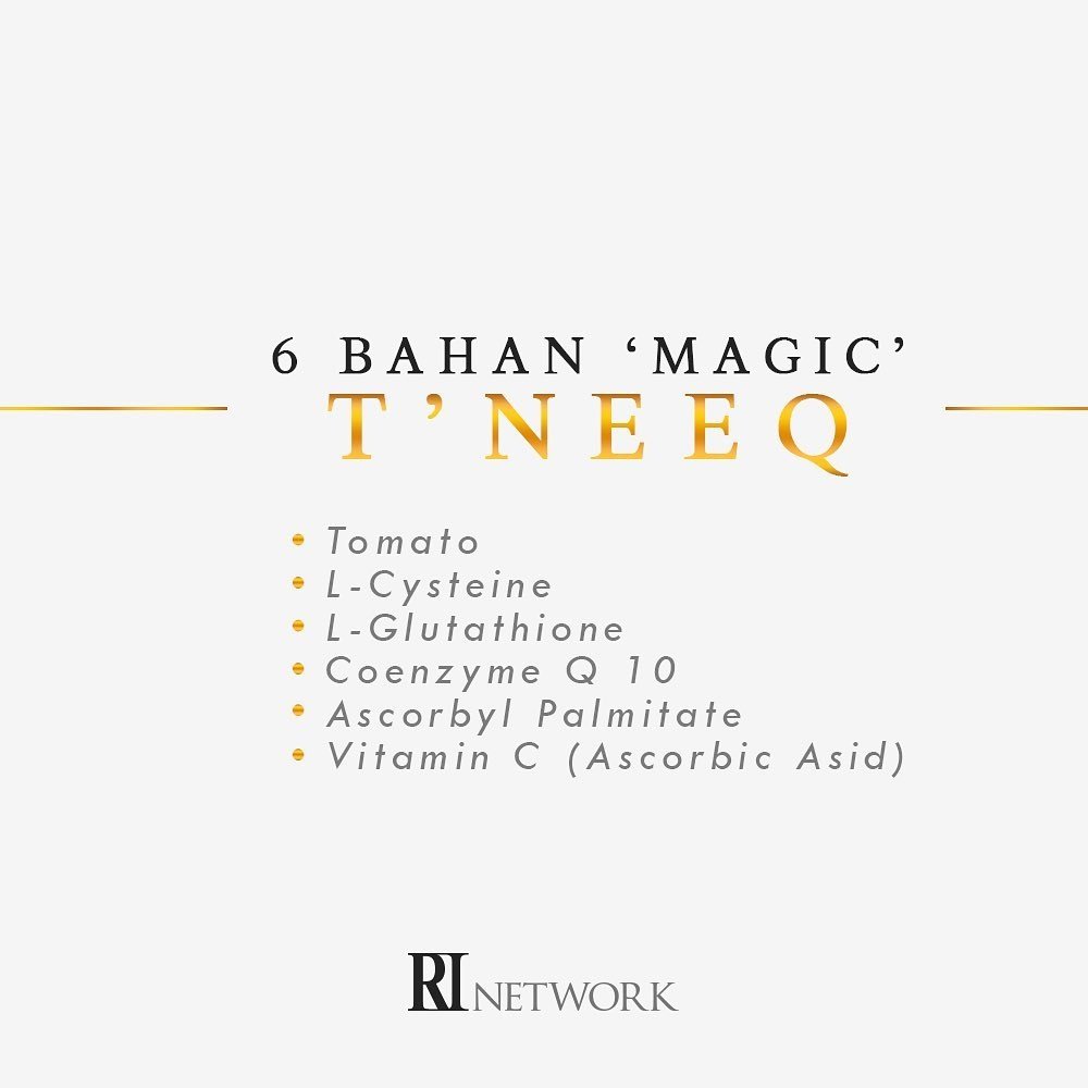 Dari pembacaan yang aku buat, T’neeq ni adalah berasaskan kepada 6 bahan utama, seperti di dalam gambar di atas. Khasiat utamanya adalah terletak kepada buah tomato!