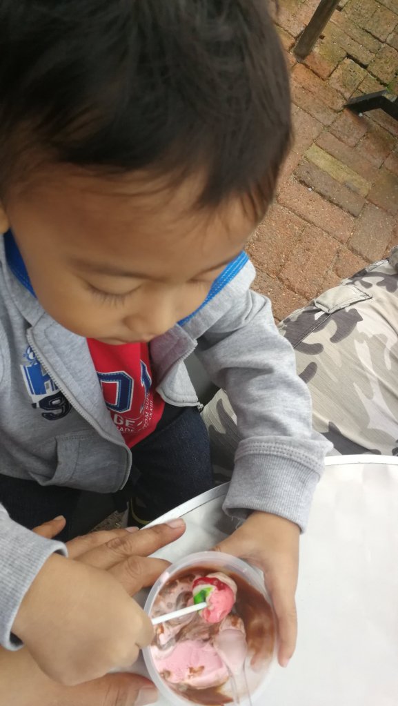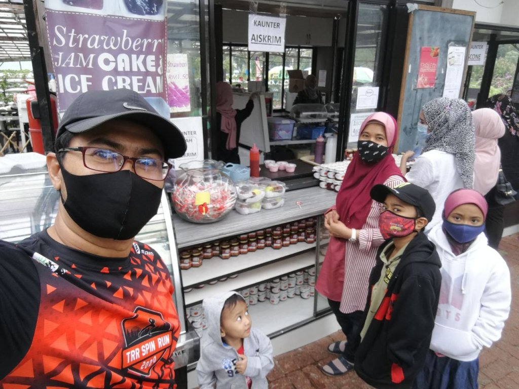 Selesai makan tengahari, kita semua bergerak ke KHM Strawberries & Jam di Tanah Rata. Cuaca masih hujan renyai-renyai tapi abah kata kita gamble je, ada rezeki untuk petik strawberi, kita petik. Kalau takde, kita jalan-jalan cuci mata. Oleh kerana hujan, kita lepak dulu di cafe KHM menikmati aiskrim strawberi. Menurut staf KHM Strawberries & Jam ni, mereka dah tak buka lagi tempat mereka untuk aktiviti memetik strawberi. Kita sedikit kecewa di situ especially Kak Ya. Takpe, kita tengok tempat lain dulu.