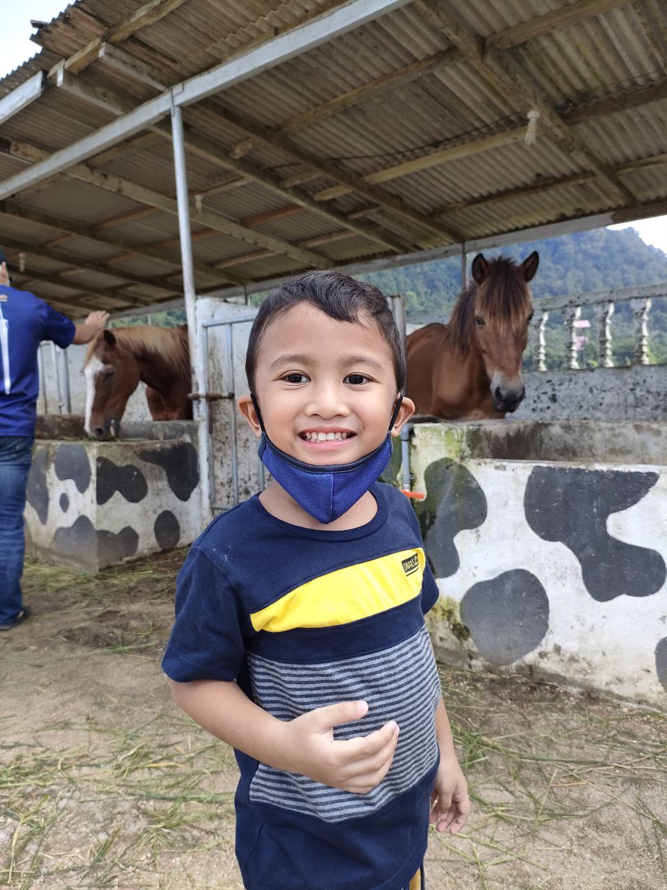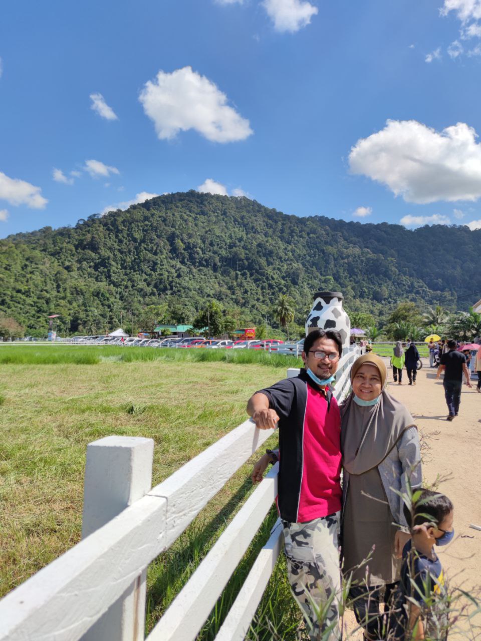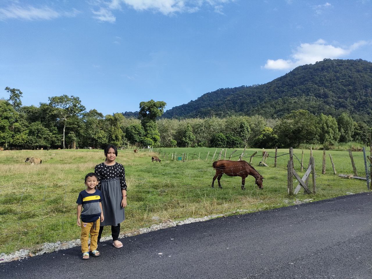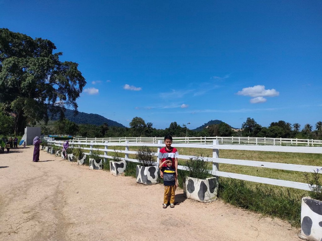Sampai sahaja di Jeram Mengaji, kita disambut dengan pemandangan bukit nan hijau dan padang yang terbentang luas, tempat lembu-lembu dan kuda-kuda di sini makan rumput. Pengunjung pun masih tak ramai memandangkan waktu baru masih jam 2 petang. Walaupun cuaca panas, kita semua tetap enjoy bergambar. Biar gambar berbicara…