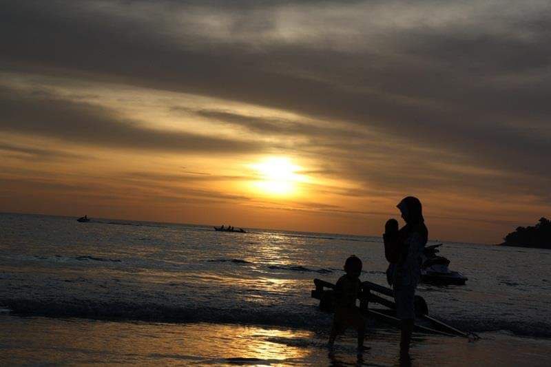 Ada satu petang tu, abah bawak kita bersiar-siar di tepi Pantai Chenang sambil merakam momen-momen kita berempat sehingga menanti sunset. Model yang setia siapa lagi kalau bukan along π