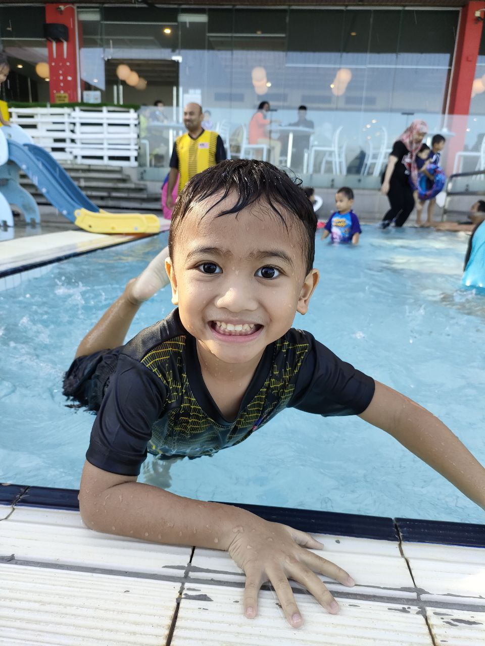 Dalam pukul 6.15pm hujan dan angin dah reda walaupun masih renyai-renyai. Abah pun kata jom lah kita pergi kolam. Nasib baik sempat mandi walaupun hanya 30 minit.