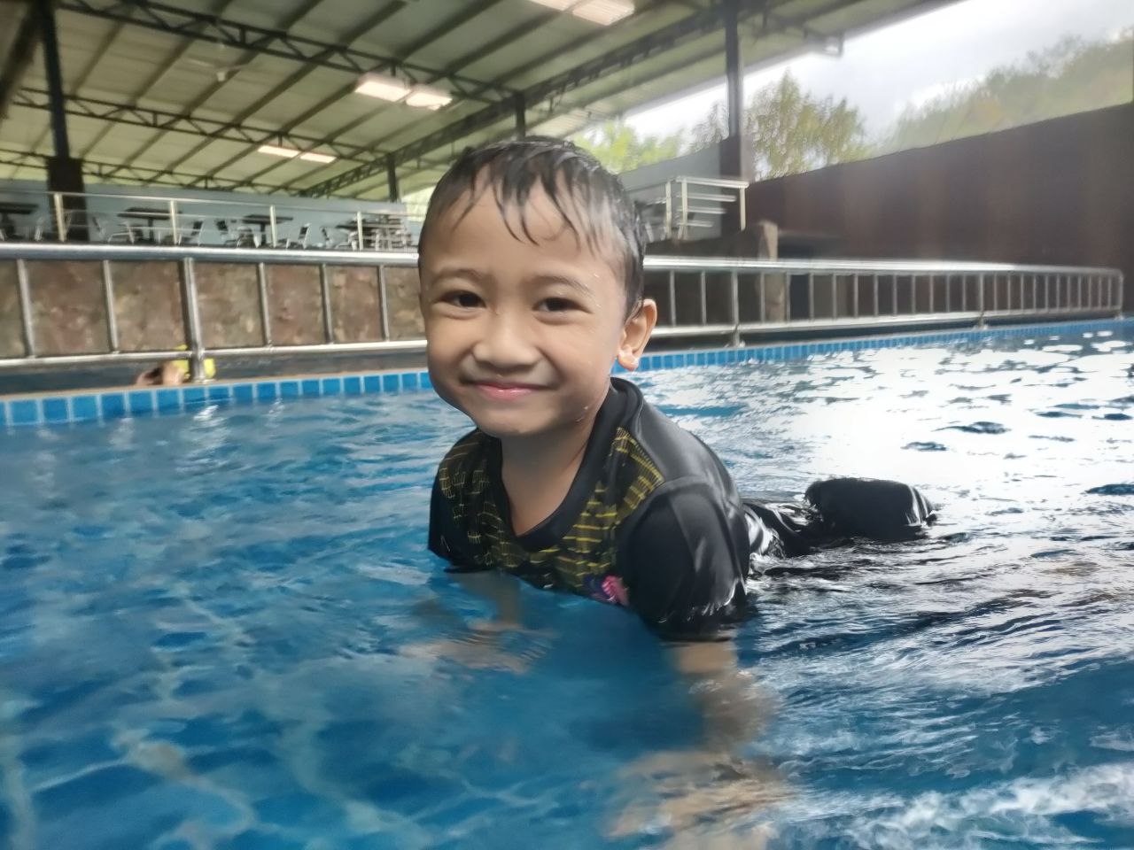 Sebaik sampai bilik, along, kak ya dan tok terus bersiap untuk mandi kolam. Mama dan uci unpack barang dulu, then baru ke indoor pool bersama Haikal. Petang tu pulak hujan sangatlah lebat. Mujur kita semua stay in guest, dapat mandi di private indoor pool walaupun hujan lebat di luar.