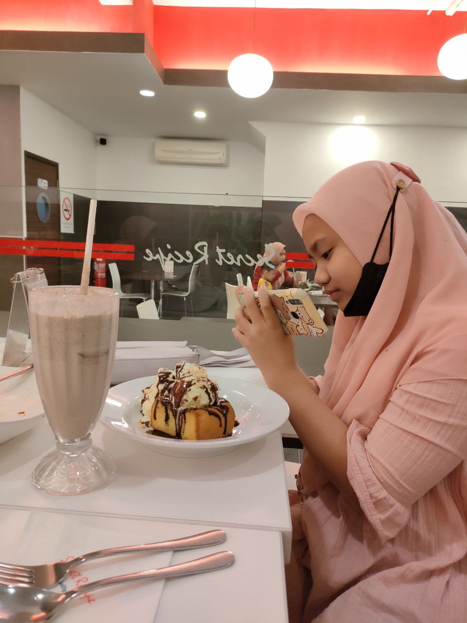 Dah puas berendam dalam kolam yang sangat sejuk (air kolam ni adalah sumber dari air bukit), masuk bilik semua pakat sambar makan maggi cup. Selesai solat maghrib, kita pakat keluar dinner ke Secret Recipe.
