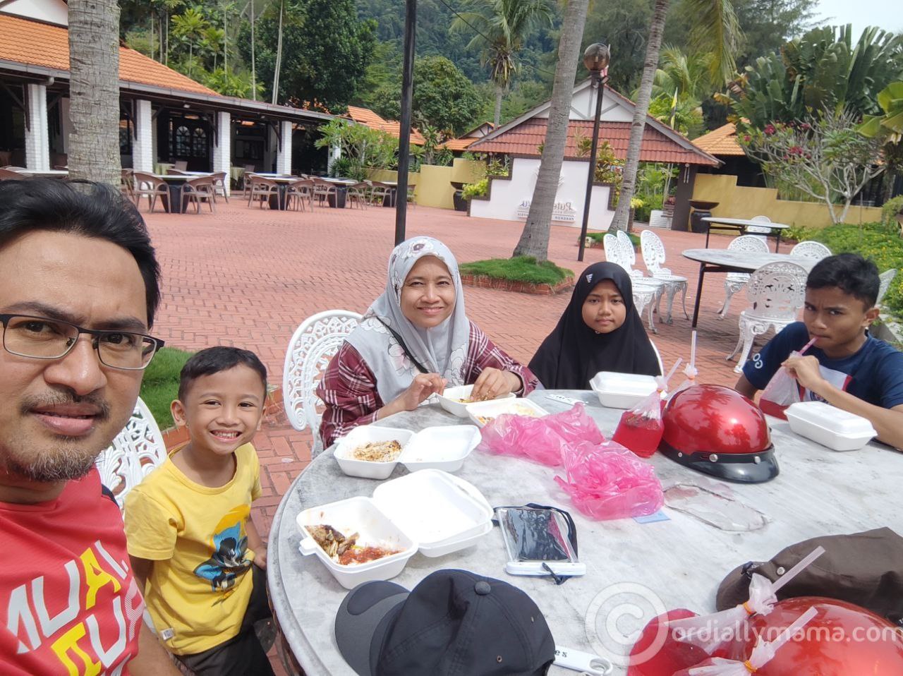 Pagi itu kita semua mandi kolam sepuas-puasnya. Tengahari mama abah tapau lunch, kita makan sama-sama tepi kolam mandi.