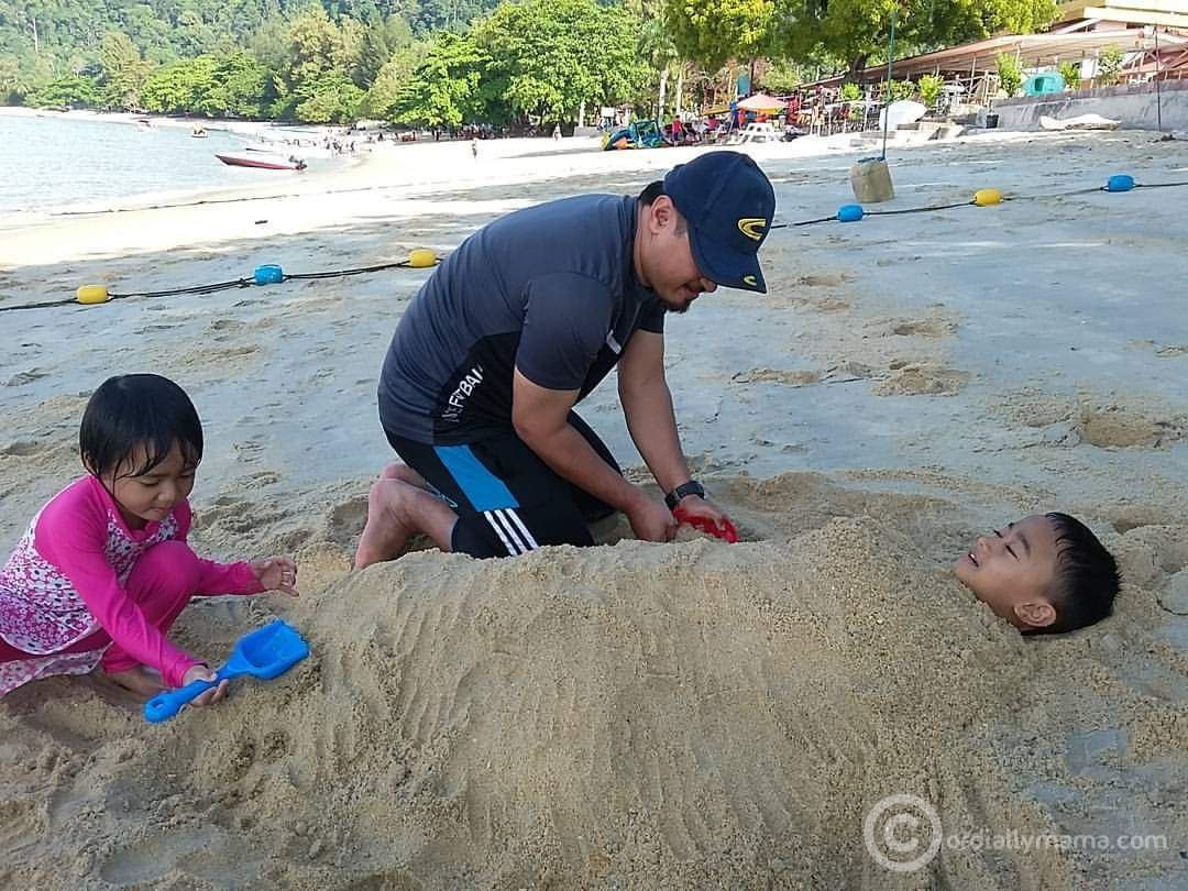 Sejam jugak kita di sana. Mama hanya mandi di bahagian belakang pulau. Abah dan anak-anak sempat pergi snorkelling di bahagian depan pulau di mana airnya lebih dalam dan lebih banyak ikan. Dapat la fish feeding puas-puas, rasa ikan makan di tangan kita. Tapi malangnya action camera abah rosak pulak, tak dapat nak snap gambar dan video di situ.